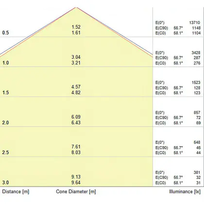 Der Abstrahlwinkel bezeichnet den Winkel, in dem das Licht aus der Lichtquelle ausgestrahlt wird. Er wird in Grad (D) angegeben. Je geringer die Gradzahl des Abstrahlwinkels ist, desto kleiner ist auch der Durchmesser des Lichtkegels, den die Lichtquelle produziert.