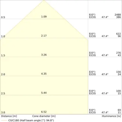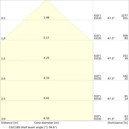 Der Abstrahlwinkel bezeichnet den Winkel, in dem das Licht aus der Lichtquelle ausgestrahlt wird. Er wird in Grad (D) angegeben. Je geringer die Gradzahl des Abstrahlwinkels ist, desto kleiner ist auch der Durchmesser des Lichtkegels, den die Lichtquelle produziert.