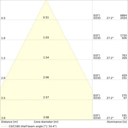 Der Abstrahlwinkel bezeichnet den Winkel, in dem das Licht aus der Lichtquelle ausgestrahlt wird. Er wird in Grad (D) angegeben. Je geringer die Gradzahl des Abstrahlwinkels ist, desto kleiner ist auch der Durchmesser des Lichtkegels, den die Lichtquelle produziert.