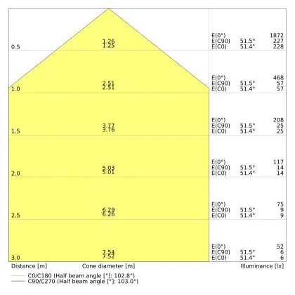 Der Abstrahlwinkel bezeichnet den Winkel, in dem das Licht aus der Lichtquelle ausgestrahlt wird. Er wird in Grad (D) angegeben. Je geringer die Gradzahl des Abstrahlwinkels ist, desto kleiner ist auch der Durchmesser des Lichtkegels, den die Lichtquelle produziert.