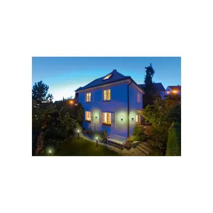 Beleuchtung mit Sensor schaltet sich nur ein, wenn ein bestimmtes Signal empfangen wird. Dies senkt die Energiekosten. Die (integrierten) Sensoren reagieren auf Dunkelheit (Dämmerungsschalter) und/oder Bewegung (Bewegungsmelder).