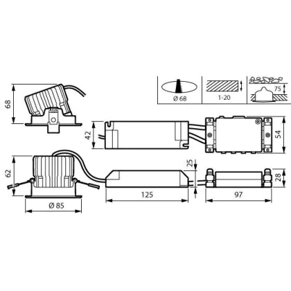 Der Ausschnitt einer Leuchte unterscheidet sich von den Abmessungen der Leuchte selbst und bezeichnet speziell die Grösse der Öffnung in der Decke, die für die sichere Montage der Lichtquelle benötigt wird.