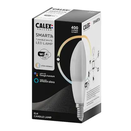 Cette ampoule Calex Smart Tuya Wifi E14 Bougie Filament 4.5W 400lm - 822-840 Accordable Blanc | Dimmable - Remplacement 40W avec son efficacité lumineuse de lumen par watt vous permettra de profiter d’un éclairage de qualité. Avec sa durée de vie de 15000 heures, vous n’aurez pas à vous soucier de son remplacement avant quelques années.