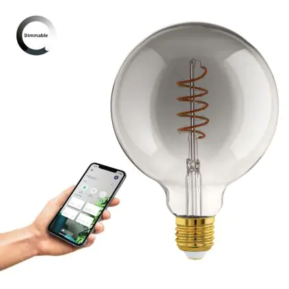 Cette ampoule Eglo Connect.Z Smart LED Globe E27 Filament Smokey 4W 150lm - 820 Blanc Très Chaud | Dimmable - Remplacement 15W avec son efficacité lumineuse de lumen par watt vous permettra de profiter d’un éclairage de qualité. Avec sa durée de vie de 15000 heures, vous n’aurez pas à vous soucier de son remplacement avant quelques années.
