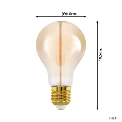 Description Eglo LED Poire E27 Filament Ambre 2W 100lm - 818 | Dimmable - Remplacement 15W
