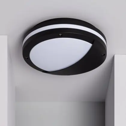 Hublot LED Natoli Ronde Visière Noir E27 | 300mm - IP54 - Convient pour 2x 40W E27