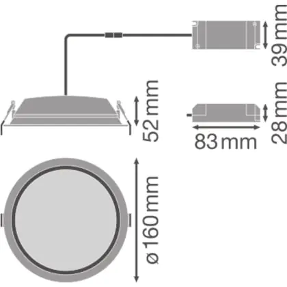 Description Ledvance Spot encastrable LED Alu DN150 14W 1190lm 100D - 830 | 160mm - IP44 - Dali Dimmable