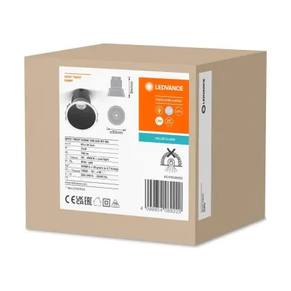 Ledvance Spot LED Twist Pro Aluminium Noir Réflecteur 10W 700lm 30D - 840 | 93mm - Diamètre 85mm - IP20 est un spot LED encastrable. Ce luminaire est conçu pour un éclairage d’accentuation pour un usage domestique ou bien professionnel. LED Intégré, ce spot LED Ledvance en Aluminium a besoin d’une place nécessaire de 85mm de largeur et mm de profondeur. Ce luminaire est compatible avec une ampoule GU10, il est important de faire attention si vous décidez de changer d’ampoule.