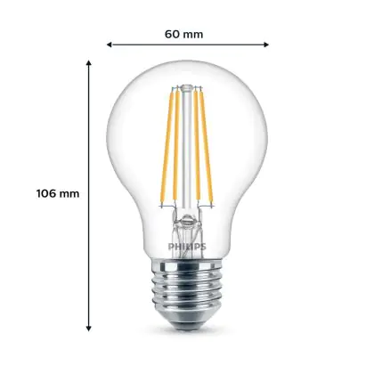 Description Lot 2x Philips Ampoule LED E27 Poire Filament Claire 7W 850lm - 840