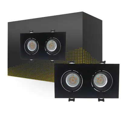 Spot Duo Noir | Diamètre 155x75mm - IP22 - GU10 Fitting est un spot LED encastrable. Ce luminaire est conçu pour un éclairage d’accentuation pour un usage domestique ou bien professionnel. Fixture Retrofit, ce spot LED Sans marque en Plastic a besoin d’une place nécessaire de mm de largeur et mm de profondeur. Ce luminaire est compatible avec une ampoule GU10, il est important de faire attention si vous décidez de changer d’ampoule.